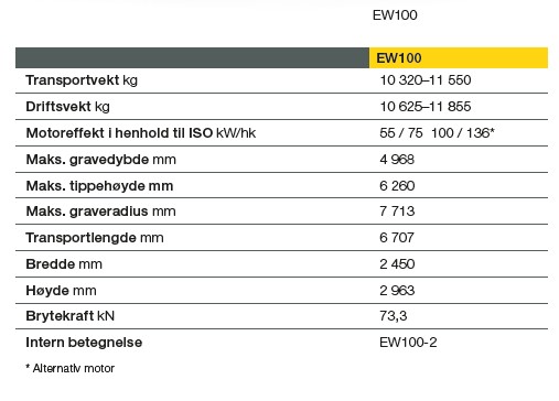 EW100-2 – kompromissløs ytelse. Klar til å dominere hver eneste byggeplass.